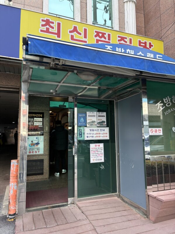 ホテルの近くに、言葉ができなくても大丈夫そうなところを探しました。凡一駅から徒歩圏内の「チョバンヘスタン」(조방해수탕/Jobang Haesutang)です。土曜の午後1時、混雑を承知で向かいました。