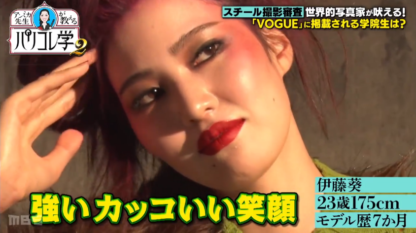 オンエアーではトップバッターが多いですね、伊藤さん。どうもトップバッターとしての基準を作られている気がします。髪をピンクにカラーリング。男性モデルはカミルさんです。