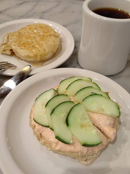 実は今年の夏、米国シアトルを旅行中、アメリカ人からクランペットのお店を紹介され、行きました。その時クランペットを知らなかった私も、アメリカの食べ物でないことは分かりました。アメリカの「甘くてふわふわ」とはちがう味と触感。クランペットは「塩味寄りでもちもち」、食事にもおやつにもなる感じです。