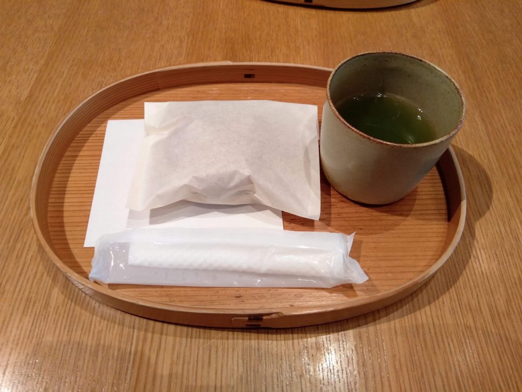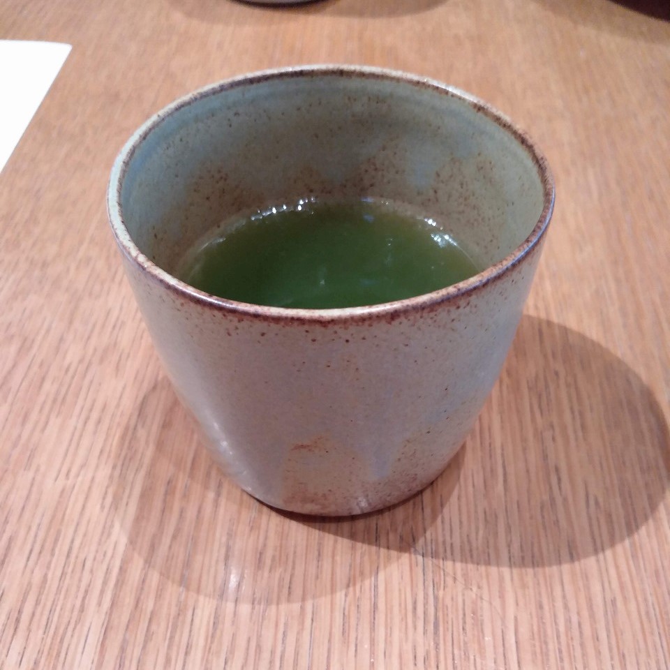 ずいぶん大きなカップに入れてくれて、良質な緑茶(300円+税)。 お茶は飲み放題。 カップは無印より高級感があり、モダンです。