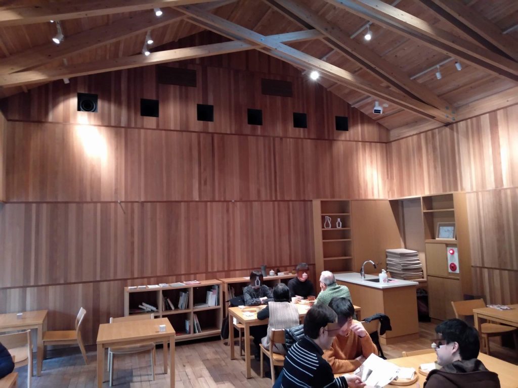 その横が、喫茶スペースの一つです。贅沢に、高い天井。