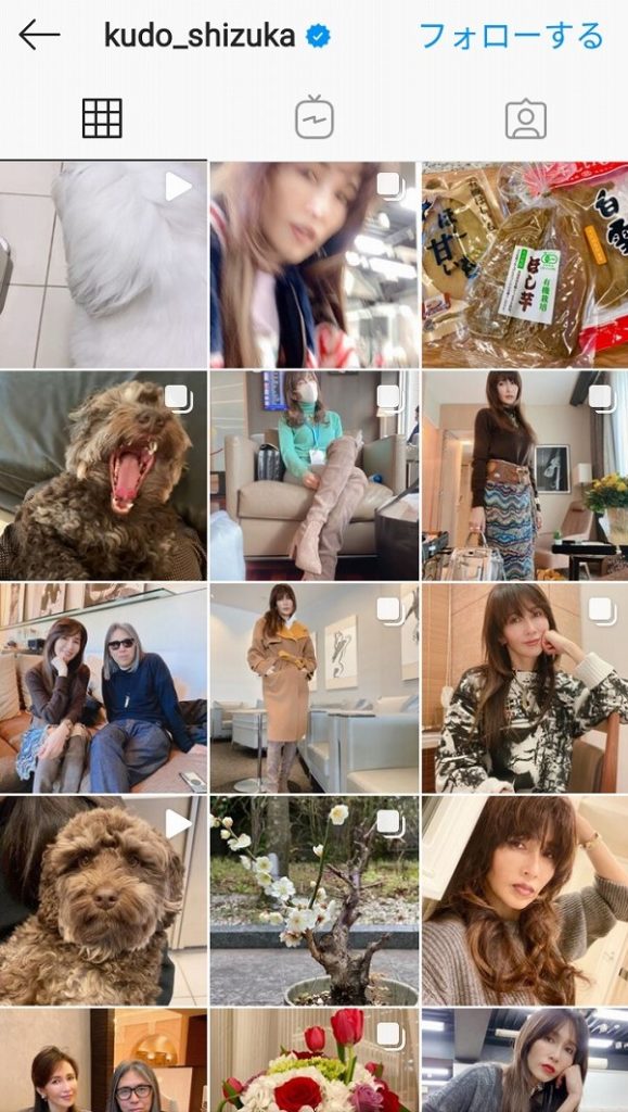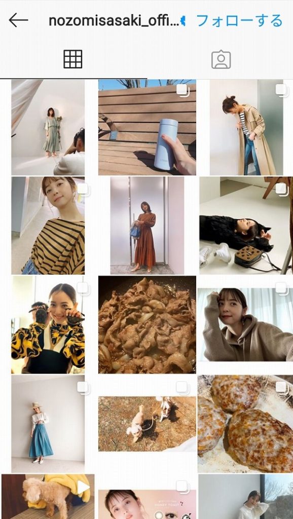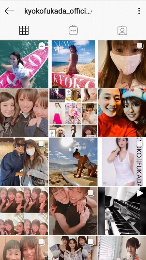 どちらかと言えば、左側(左ほほ)を見せるアングルが多いですね。(以下、インスタのスクリーンショットで顔の多そうな投稿群を選んでいます。)