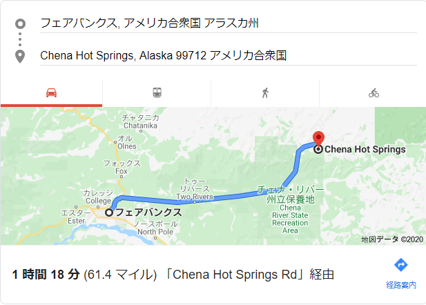 アラスカ・フェアバンクスからチナへの小旅行(Chena Hot Springs Resort)