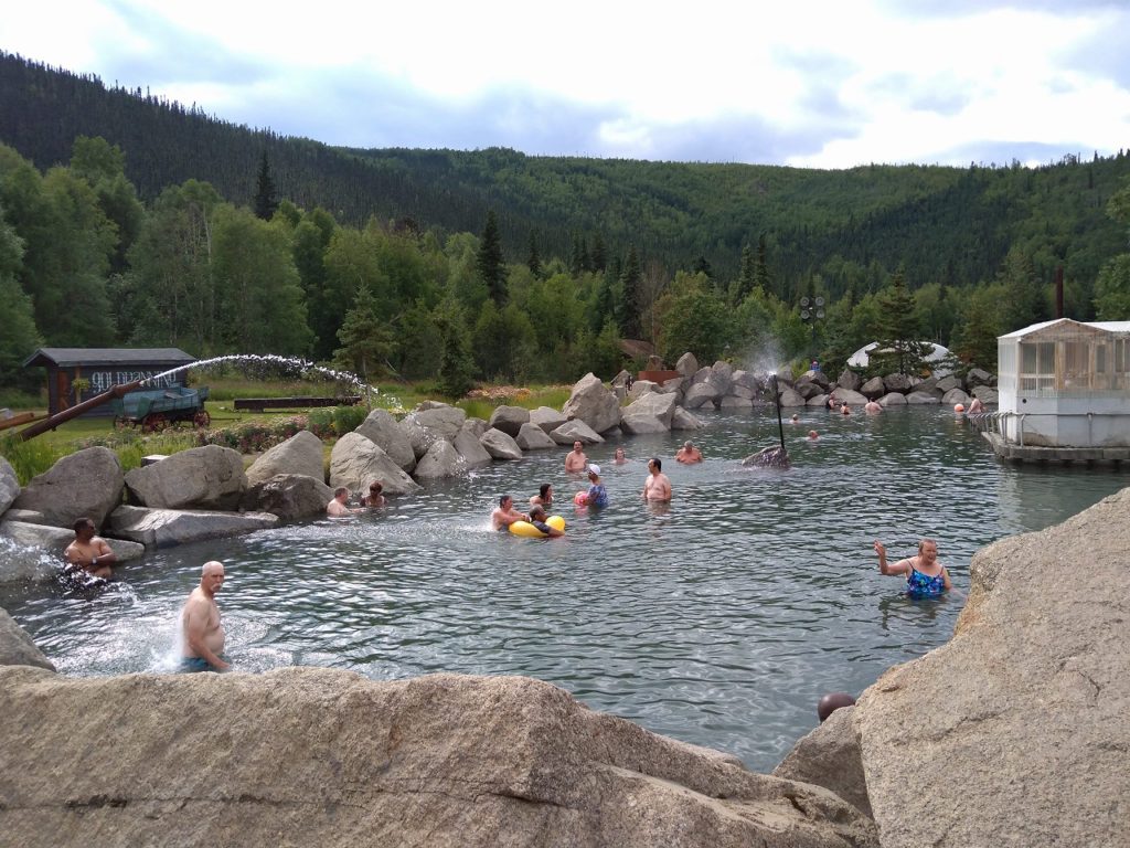 こちらの目玉は、スパ(温泉)です。日本とは違って、水着を着て男女ともに入るスタイル。見た感じ、シニアの方が多いのは、アラスカと言う土地柄で、皆さんリタイアして旅を楽しんでいるのですよ。